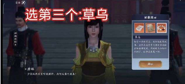 需要证据:草乌,点击正确的证据就能快速完成任务。