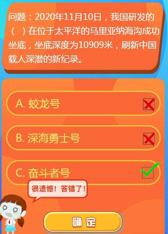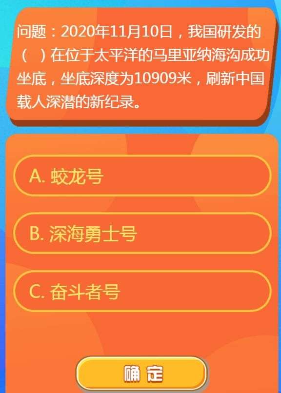 2020年11月10日我国研发的什么在位于太平洋的马里亚纳海沟成功坐底这道题目小伙伴如何选择,正确的答案是什么,接下来为大家介绍红领巾爱学习第一季13期题目答案汇总。
