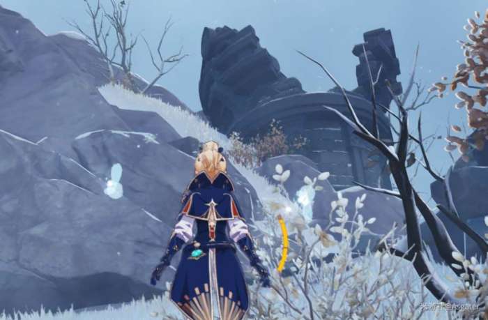 我习惯将这个地点成为“蓝色的歪脖子树”,这里是一处拔剑来获取匣子,拔剑之后会有一个限时挑战,分为两波,第一波是一个冰深渊法师,第二波是一个水深渊法师、一个冰深渊法师。