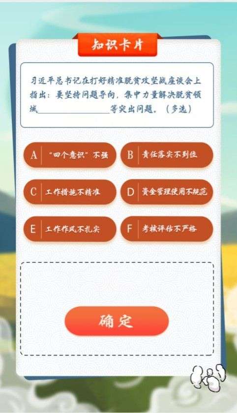 题目1:加快者区脱贫致富步伐,必须真抓实千,贯彻精准扶贫要求,做到_______,精准发力,扶真贫、真扶贫,把钱真正用在7刃上,真正发挥拔穷根的作用。