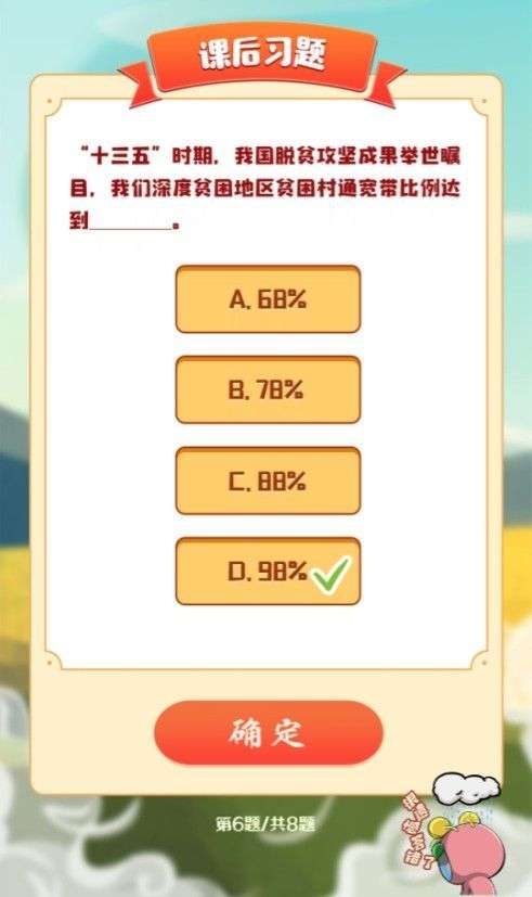 题目6:十三五时期,我国脱贫攻坚成功举世瞩目,我们深度贫困地区贫困村通宽带比例达到多少。