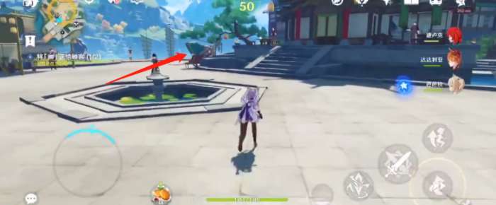 在地图上找到传送点里璃月,传送点出来,阿山婆就在斜对面的摆摊子那边,