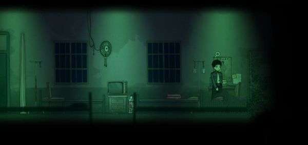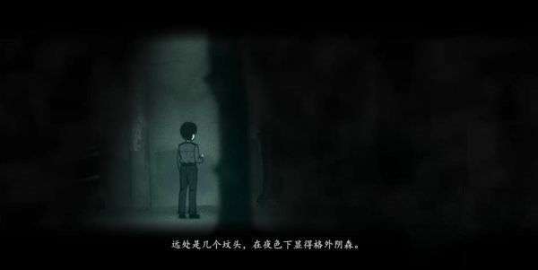 游戏一开始往右走,来到烟酒副食店,买到电池。回去把电池交给郑哥后,继续往右走,走到头发现回到了烟酒副食店。往前走发现,之前很正常的墙上出现了血迹。
