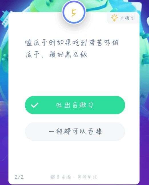 蚂蚁庄园嗑瓜子吃到苦的,该怎么办,是吐出后漱口还是吞掉,1月19日的题目就是这个,吃到苦瓜子怎么办呢,最好是该怎么做?下面就来介绍下嗑瓜子吃到苦的怎么回事。