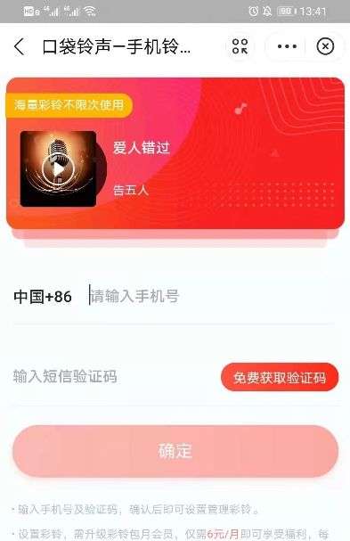 5、口袋铃声的所有歌曲设置都需要每月6元才可以使用的,所以用户要先了解清楚。