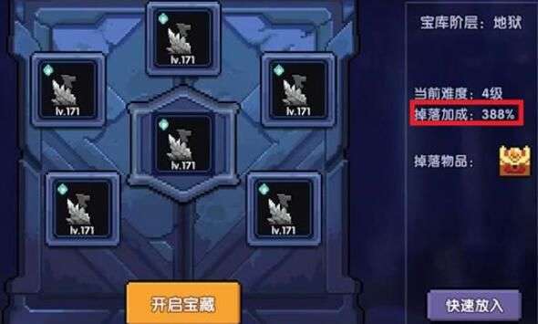 这边的掉落加成只根据钥匙的品质改变,放6把红钥匙掉落加成达到最高,而钥匙本身武器碎片加成不显示在这里。