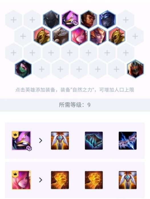 这套阵容前期过渡看天选 根据天选的羁绊搭配 最好拿个前排肉天选 装备以连胜为主 保证有个复活甲就行