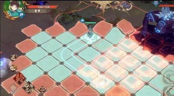 第二回合,我们让青萝移动到他的左上方避开危险。