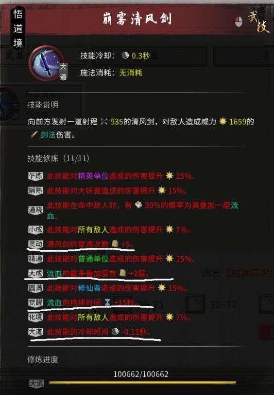 武技:所需词条:流血叠加层数上限,冷却时间,穿透,如果有条件再加个流血持续时间。