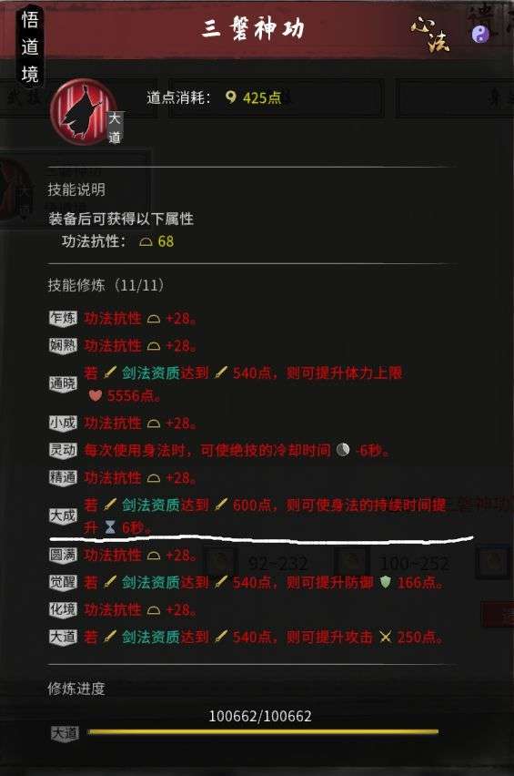 这个就不多说了,由于分身很多,我们在开领域的0.5秒内就能叠满150层,能瞬间使造成的伤害提升125%,再加上剑斩50%血以下增伤的18%(9层剑斩),在敌人半血以下能使输出提高1.43倍。
