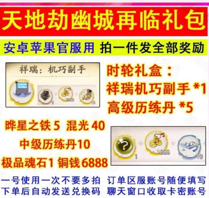 某宝坑爹兑换码已经降到2元内,且同类礼包只能兑换一次。注意天地劫里的极品质魂石=SR烂大街的品质,别被字面意思骗到了。智商税主页如图: