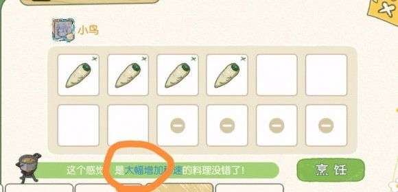 这四个食材是有明显的加速效果哦,其他食材可能要放五六个,但是这四个食材里面只要放3-4个就能得到“是”的程度,最高增益的效果了!!
