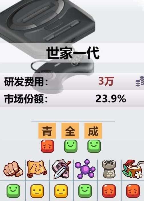 世家机上市开始到下市,都是份额第1的设备,长达5年没被取代,因为他占据市场份额太大,又不擅长休闲游戏,所以这个阶段开始休闲游戏会出现断层。而家用电脑被抢了份额,也就只能买下世家机了。而且不难发现,世家一代授权只要5w,比游戏男孩还便宜。。不过世家机只适合动作/模拟游戏,属性很差,远不如电脑,市场份额却很好。要不要转型看下手里的游戏题材。不过半年后会发布《超级游戏人》