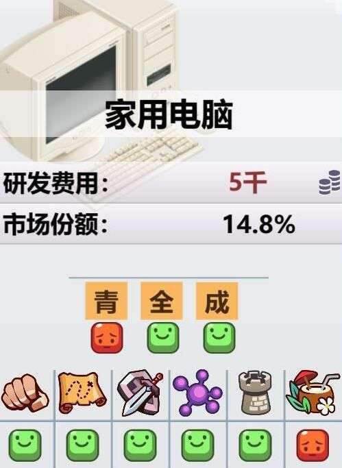 PC老哥全阶段可用,完美的属性,百搭的类型,低廉的研发费用,扭转破产的不二选择。只可惜市场份额会被挤压,后续时间线我会仔细说什么时候更适合开发电脑游戏。
