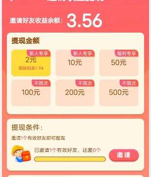 提现2元需要邀请1一个人,10元的时候变成20,然后是50个,1000个,你以为邀请完就能提现了吗?
