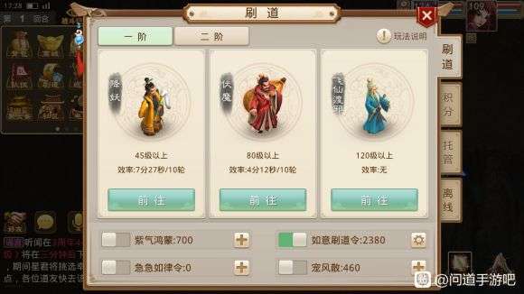奇门秘境关卡众多,闯关成功后可获得道行、武学或秘境积分,秘境积分可用来兑换商城道具;