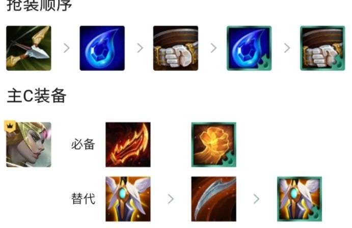 这个阵容最重要的是黑鸟盾,只要有两个黑鸟盾,然后是救赎,黑的白的都可以,天使装备只需要一个羊刀,剩下的捡破烂。