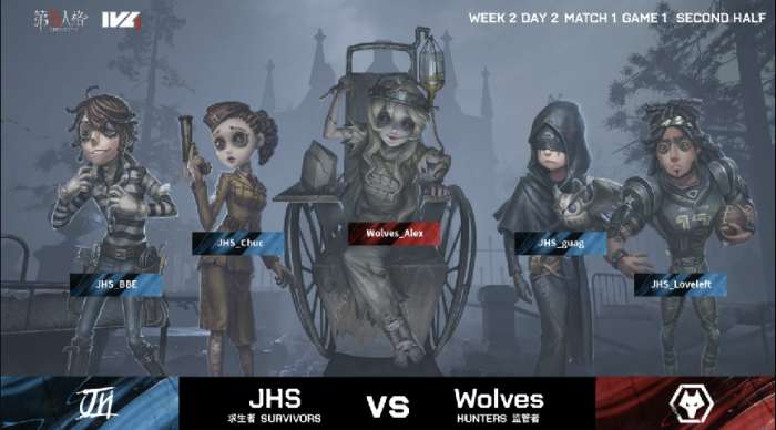 今天将进行的是第五人格2021IVL夏季赛常规赛的第2周第2天第1场中的第1局比赛,对阵双方为JHS战队和Wolves战队。