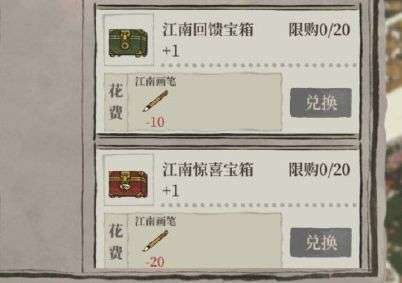 3、江南回馈宝箱需要江南画笔10个,江南惊喜宝箱需要20个江南画笔,共30个,收集起来还是比较耗时间的。