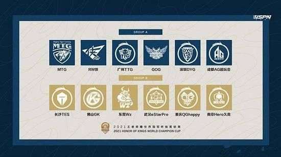 十二支队伍经过老帅、Gemini和张梦雪的三轮抽签,本届世冠杯的AB两组正式确定。A组的6支战队分别是:MTG、RW侠、广州TTG、GOG、深圳DYG、成都AG超玩会;B组的6支战队则分别是:长沙TES、佛山GK、东莞WZ、武汉eStarpro、重庆QGhappy、南京hero久竞。