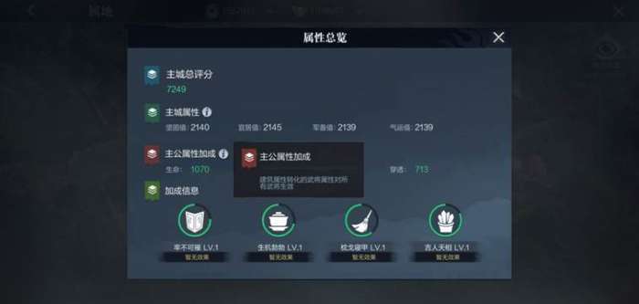 建筑可使用对应的材料进行升级,当属地建筑等级达到一定等级,便可以进行属地升级,提升主城属性、主公属性,获得武将上阵的加成效果。规划属地建设,可以直接提升战斗力,如果推不动主线剧情,建议大家优先建设属地。