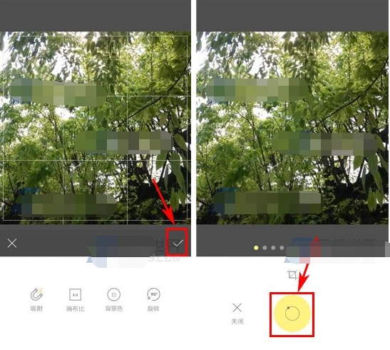 2、从相册中选取一张照片后裁剪好点击【√】,继续点击【黄色按钮】进行下一步。