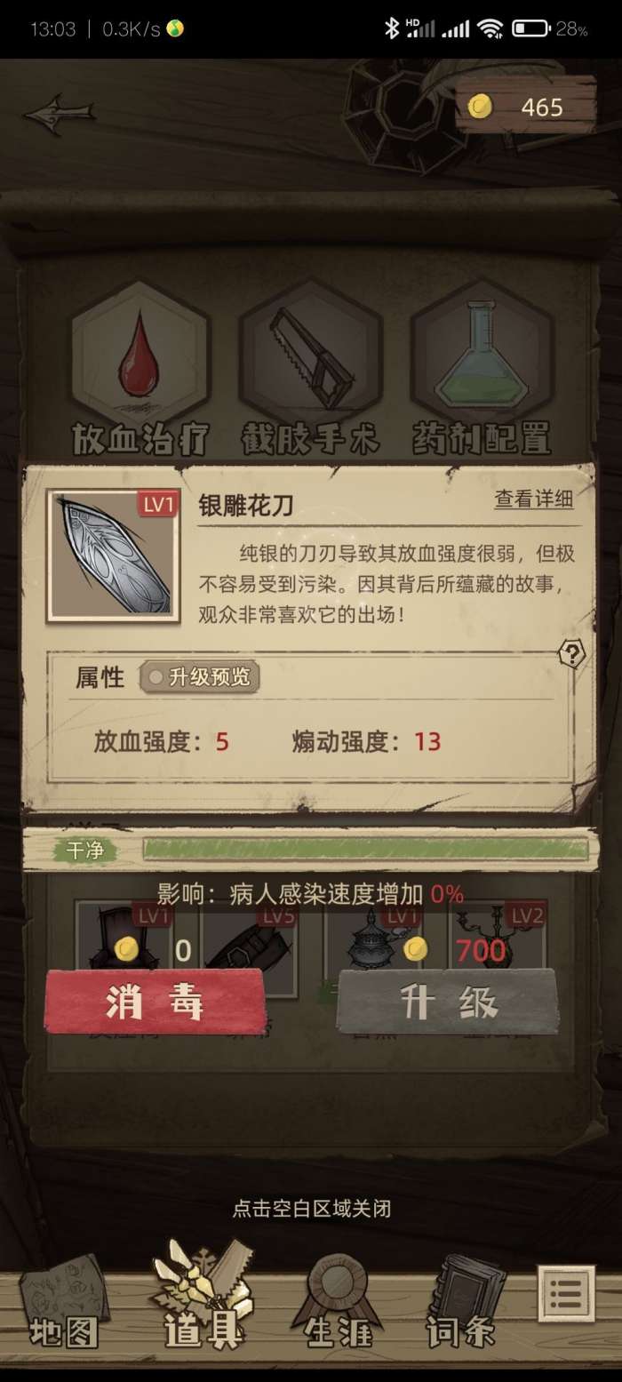 流程:双倍金币++最高费用患者+黄锯/弯锯+满观众+无麻醉+烙铁,死了就祷告,一个市民/官员下来价格少说1000,2000都有,拿来的钱再去升级其他装备或者解锁剧情,达到钱生钱的效果。
