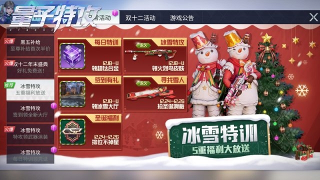 《量子特攻》冰雪节活动今日上线了,各种福利和新的游戏内容都开始更新了,刚认为快来看一下吧!