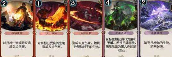 废话少说,还是来到卡组本身。这套牌的法术我们带了【火上浇油】,作为1费打五的优秀单解,带上两张还是没错的,释放条件对我们这套牌根本不是问题。至于新卡【佯攻】。熊猫个人所有混红卡组建议最多一张,以后环境变化可能实用性会上调。现在还是被【火上浇油】完爆的。【净焰投掷】红色的门面法术,可解场可打脸,灵活好用,满编。【灵魂转移】黑色的过牌大多带有自残或者自损性质,先伤己再伤敌不意味着非要主动掉血。这套牌带了【塑古大师】,消灭衍生物完全没有压力,就算逼到绝路上以这套牌的曲线也不会太亏。不过3张绝对会卡手,这里带了两张,【血狂乱斩】优质的深红群解,赚卡还能赚节奏,用过都说好。满编。【疫魔之力】外挂性质的卡,这套牌本身的出发点是以【戈武仆从】本身的效果为出发点的一套卡,对抗衍生。如果对面是巨人的话就会差一些,这里的【疫魔之力】可以为我们提供一些抗性,不过不建议多带,一张即可。