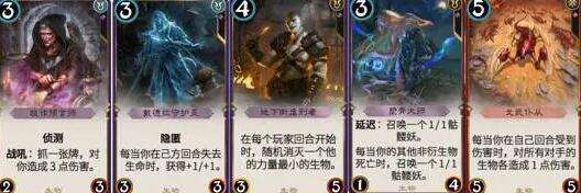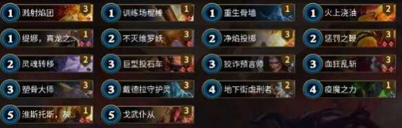 戏份最重的肯定是卡组核心【戈武仆从】,身材稍亏,效果如果是运用得好,一波返场也不是梦,肯定是要满编的。【地下街虐行者】配合衍生物或【骨墙】,节奏赚的飞起。整体来说表现还是相当不错的,不过满编效果就很差劲了,带两张。现在衍生在天梯很多,【塑骨大师】制造的衍生物来做交换也是不亏的,何况我们还可以有信仰打combo,满编。【戴德拉守护灵】是很冷门的一张卡,在这套牌的发挥却不错,不过缺点也很明显怕驱散。但是做人没有梦想和咸鱼有什么区别?我们的目标是三费下它,4费【狡诈预言师】,抽自己一鞭子。然后花式秀操作,把他养成巨巨!满编。最早我都没有带【狡诈预言师】选择了【噬齿血蛭】,但后来发现并不能供得起每回合3血。【狡诈预言师】过牌战场于一身还是不错的,不过身材有些亏,前期的博弈容易丢节奏。这里只带了两张。至于剩下的生物卡都是各费的优质卡,用来填充曲线的了。