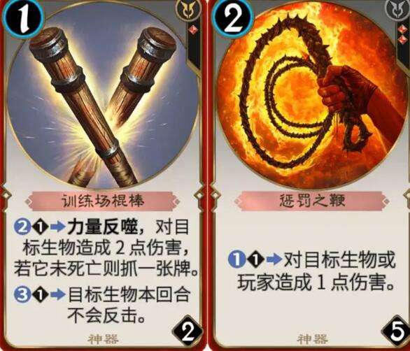 这套牌我们只带了【惩罚之鞭】和训练场棍棒,【训练场棍棒只带了一张】,这套牌的结构本身就注定了他不能向轰天炮一样,【训练场棍棒】的二效果的作用表现好多,一效果也让节奏,不过带一张还是可以的,【惩罚之鞭】可以配合【戈武仆从】清场也可以补刀,灵活好用,满编。