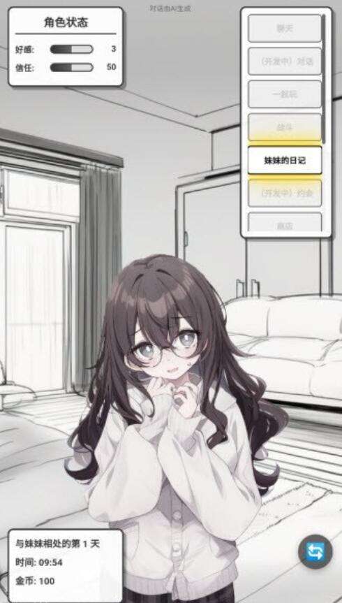 随着日常互动越来越多,玩家发现好感度也会越来越高,毕竟好感度其实是会涉及到数值的,从中也就证明了这两个人的关系将会。越来越好,玩家可以拉着妹妹一起玩小游戏,陪他在房间里面打闹,也可以等关系更加好了之后,约她出门散步吃街边的小吃。正是因为这些互动情节,让两个人的同居生活慢慢的拓宽。其实在这里并没有所谓强制的目标,也没有必须要完成的任务。玩家只是跟妹妹在一起慢慢的积累,想聊天就聊天,也正是因为这种慢节奏的生活,让玩家此时也会感觉到松弛感。通过日记,其实也会反射出现如今大家生活在快节奏的时代,总是在追求效率,却忘了慢慢靠近,本来就是一种体验。