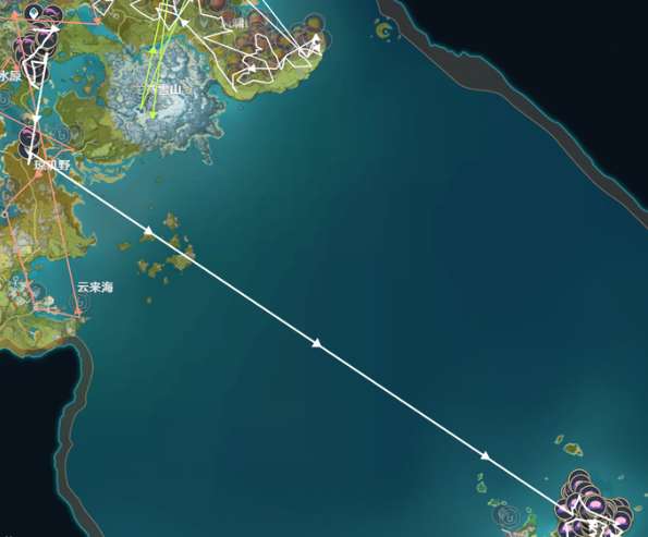 路段1,3,5,6,8分别为蒙德,璃月,稻妻,须弥,枫丹境内钓鱼点
