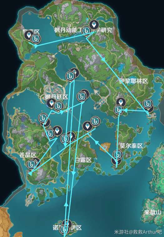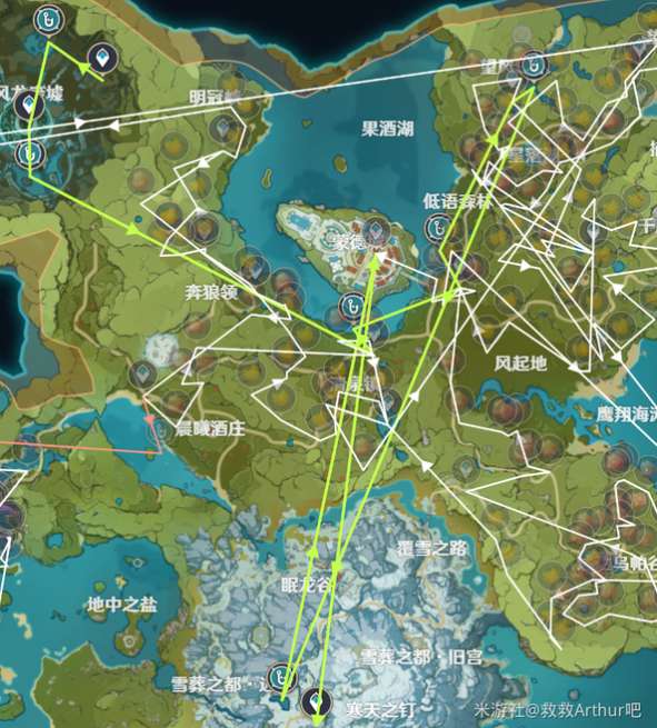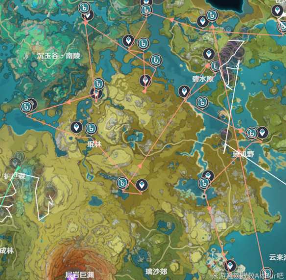 路线10为甘露饵合成材料采集路线(无郁稠林及卡萨扎莱宫香辛果)