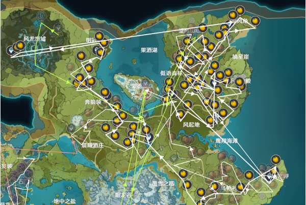 路段2为果酿饵合成材料采集路线(蒙德地区日落果)