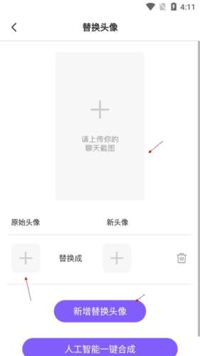 2、点击输入你的头像和截图,并点击其中的替换功能即可。