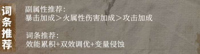 这样让赤痕跟赤荒在战斗的生存能力上面有足够的提升效果,那么这里大家还要记住一点就是整体阵容搭配好了之后,上面的赤痕他在技能上面一定要频繁出发暴击,才可以得到足够的加成,所以配合词条上面大家要注意选择调优跟连锁破坏才是比较适合他的,这样带来的高爆发输出才是赤痕能够带来的能力,那么这里如果大家在整体的效果上面搭配好之后,附加属性选择上面要优先要选择暴击加成的效果,因为此类火属性的角色都是利用暴击带来足够输出加成的,而赤痕他第2个选择的辅属性效果,可以通过火属性伤害加成来带来足够的攻击。