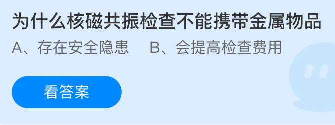 为什么核磁共振检查不能携带金属物品?支付宝小鸡课堂新的一天答题开始啦!每天只需花一分钟,动动手指答对问题,180g饲料立马到账!2026年4月23日蚂蚁庄园的小鸡课堂题目正确答案是【存在安全隐患】,核磁共振检查携带金属物品存在安全隐患。