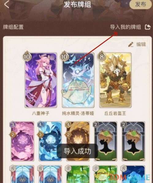 2、然后选择一个牌组,点击右上角的导入。