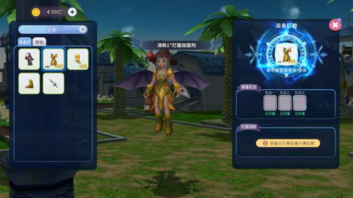 每件装备最多可打磨3次,每次成功即开启1个宝石镶嵌孔(前2次必成)。这是装备进阶的奠基之石,孔数决定未来潜力。