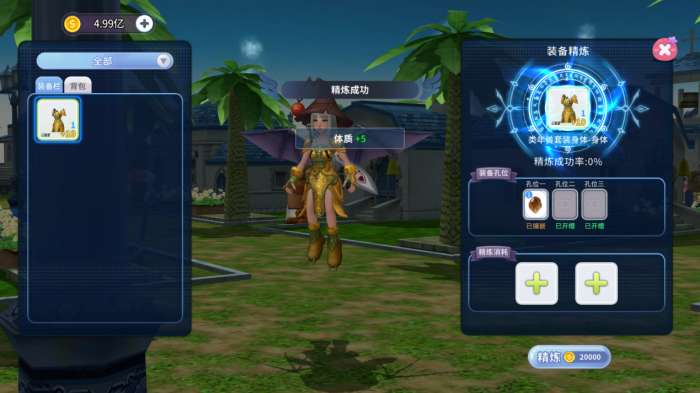 在打磨出的孔中,镶嵌入各种属性的宝石,即为精炼。宝石等级越高,带来的属性飞跃越显著。这是将普通装备点化为神装的核心步骤。