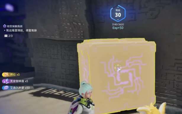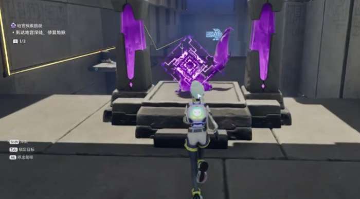 首先大家进入的是腾云驾雾这个地宫的话,想要进入大门就需要完成大门的通电机关,用紫色电箱去推开左边的普通木箱,让电路成功连接,在远电箱的位置,是第一个宝箱,电箱位置没有放好的话,这里的电路是不会流通的,所以大家可以不停的移动,直到整体的电路成功连接,大门就会开启,开启之后往前走进去,在左边平台上爬上柱子,然后会有一个石块,走上石块就可以向前移动,移动到紫色球体旁边,大家可以按照交互来提供电力,然后等待平台移动过来就跳上去,然后跟随平台往前移动,此时的话,也会进入到下一个地点当中。