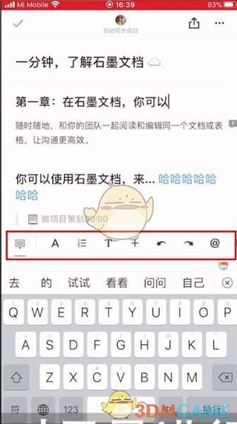 首先打开【石墨文档】客户端,然后点击进入一个文档,接着点击文档中要编辑的目录文字所在位置,唤出下方的功能菜单栏,此时就可以对目录进行编辑操作了。