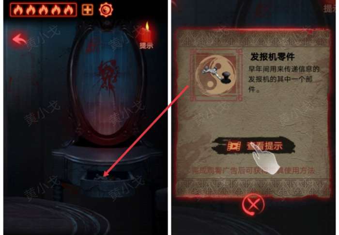 7.关闭喷泉,获得线索(瓶子图案:顺时针2,逆时针1,顺时针3,逆时针2)
