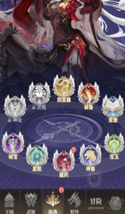 游戏刚开始时,助战系统就开放了四个系统,是玩家基本战力的来源,给玩家提供了全方位的属性加成。四圣器的加入使得玩家通过公会玩法可以得到强力装备,后期慢慢解锁高星装备,使武姬战力提升。每一件圣器都和某个阵营有联系,用高阶装备来洗练词条可以提高武姬的综合战斗力,在不同的战斗场景中都有利于武姬。装备系统加入之后,玩家可以不断升级装备品质、星级,并且锻造、强化装备来获得更多的属性加成,从而打造属于自己的一套强大的武姬阵容。
