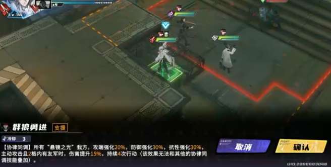 胜利的关键是打败所有的敌人,在这一个关卡中还会有职业克制的系统,其实敌人的属性并不是很高,主要的目的就是让大家可以有效去熟悉职业克制的关系。战斗进入到一定程度时,马上就会进入第二阶段,此时玩家就可以解锁共鸣的能力,包括输出治疗还有辅助。