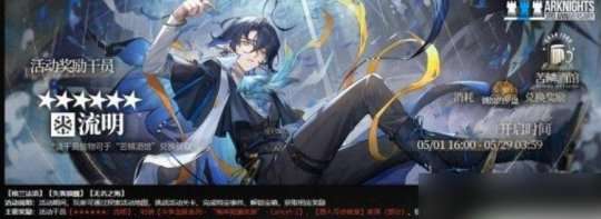 在游戏《明日方舟》中,新出现了一名六星医疗干员流明。玩家需要参加游戏三周年的活动——苦鳞酒馆,且在5月1日下午四点至5月29日凌晨3点59分之间通过活动中的关卡挑战,才能获得流明这个角色。玩家通过挑战活动关卡成功后,将以奖励的形式获得流明这个六星医疗干员。