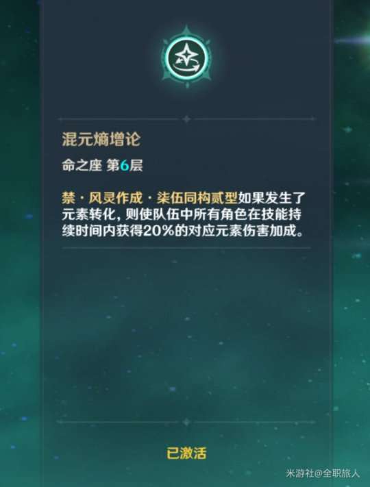 拿“玉皇妲帝”来说,草元素不会被扩散,同时,激化反应的伤害倍率受到攻击力,元素精通,元素伤害加成的影响。经过实测发现满命讨龙砂糖在刻晴和赛诺的激化队伍里的作用甚至超过了枫原万叶。由于万叶本身无法为队伍带来精通和攻击力的加成,砂糖在队伍里这两项加成加上六名增伤的伤害提升比万叶高出不少。(而且不用担心染错色很无脑)