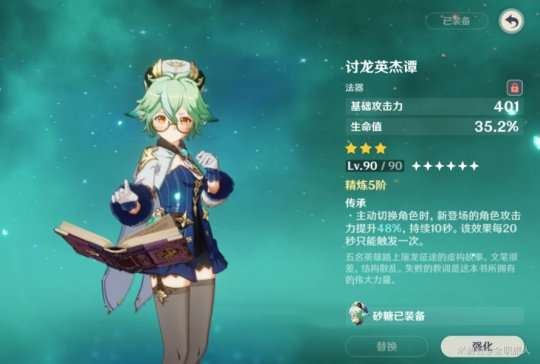 首先,据我们所知,砂糖和万叶一样,都可以佩戴圣遗物风套四件套来减少敌人的抗性。其次,我们需要一件满命的砂糖。让我们来看看砂糖六命属性的效果: