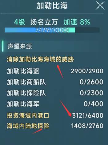 海域声望提高有海事战斗,陆地探险,商业投资三种方式!